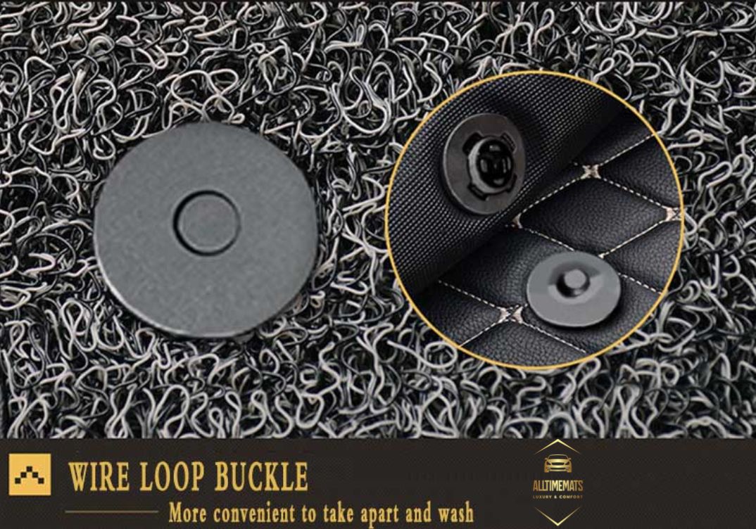 The upper layer is made from a highly durable PVC coil mesh that sits on top of the standard edition layer. The upper layer mat is locked by buttons. It's easy to install and remove, which will save your precious time during cleaning.
